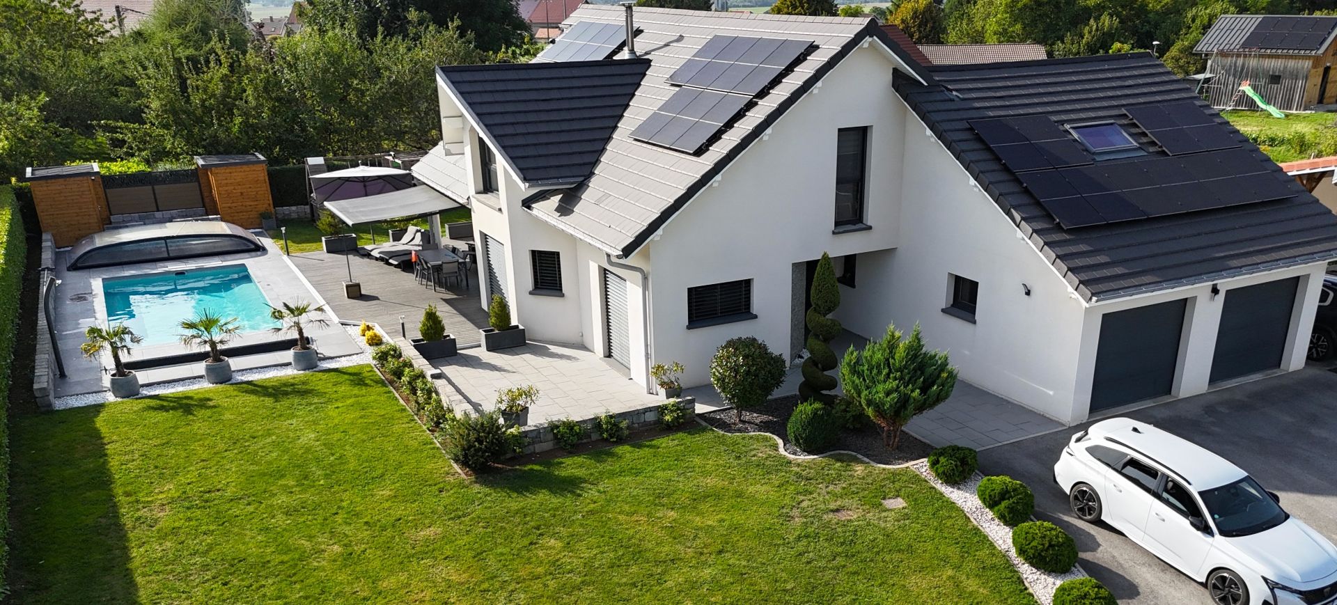 Nous réalisons des installations photovoltaïques, avec ou sans batterie, dans tout le Haut-Doubs et le Jura : maisons individuelles, projets avec recharge de véhicule électrique et solutions d’autonomie énergétique.